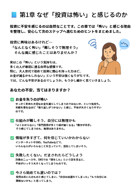 投資に対する不安を、少しずつ「納得」に近づけるヒントが詰まっています。