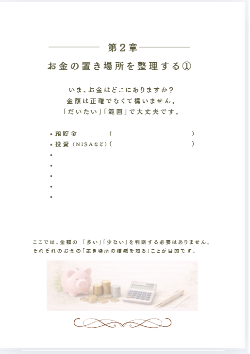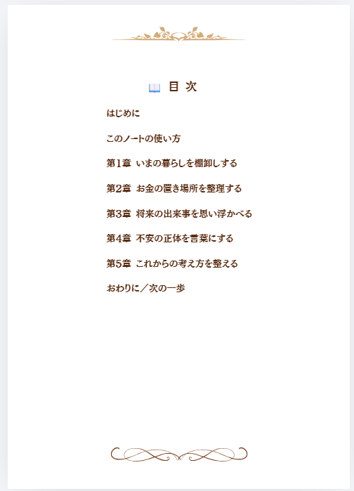 家計や老後の状況、気になることを書き出し、確かめることができるノートです。