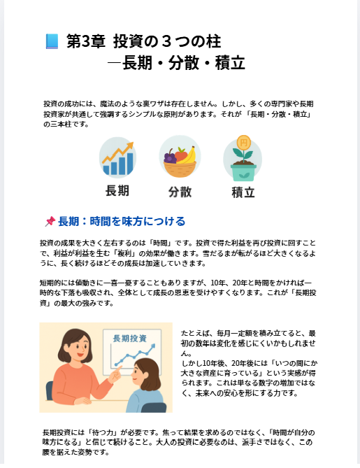 長期・分散投資のしくみと、続けるコツをやさしく解説。